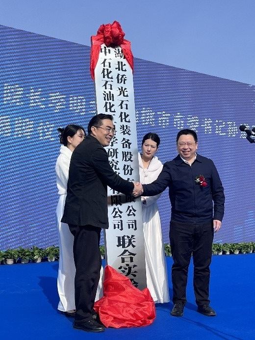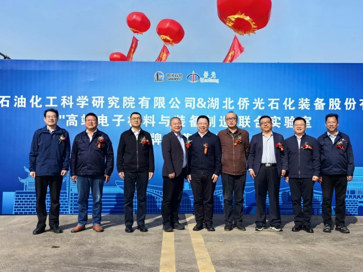 3月22日,石科院与与湖北侨光石化装备股份有限公司共同成立高端电子材料和装备制造联合实验室,在湖北省仙桃市举办揭牌仪式并召开第一次联席会议。仙桃市市委书记孙道军,市委常委、副市长胡常伟,市委常委、秘书长朱慧玲,石科院院长李明丰、副院长王辉国,湖北侨光公司董事长刘洪祥出席揭牌仪式,并为联合实验室筹建的世界最大规模反应器内构件冷模试验装置奠基剪彩。彭场镇党委书记蔡勇军,中国石化集团高级专家郁灼、仙桃市及石科院相关部门负责人及有关人员参加。