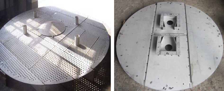冷氢、喷射盘:集成冷氢喷射与均匀分布双重功能,雾化效果佳,温度调节响应迅速。适配加氢反应器等高温反应场景,可精准控制反应温度,提升反应过程的可控性与稳定性。